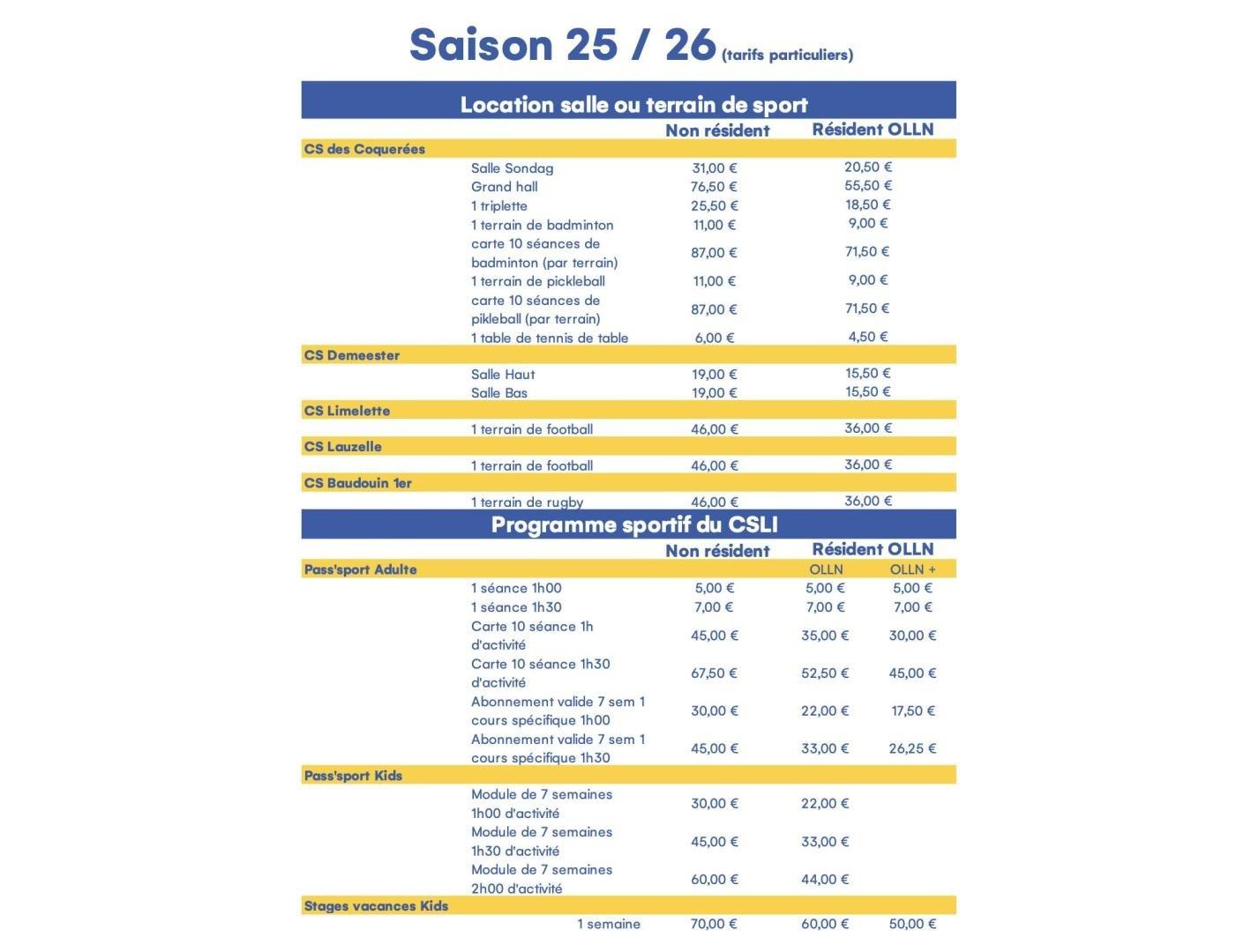 Bienvenue sur la page des tarifs de notre centre sportif.